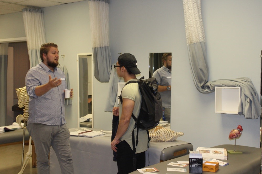 Instructor Tomas Rickus ’16 answers questions.